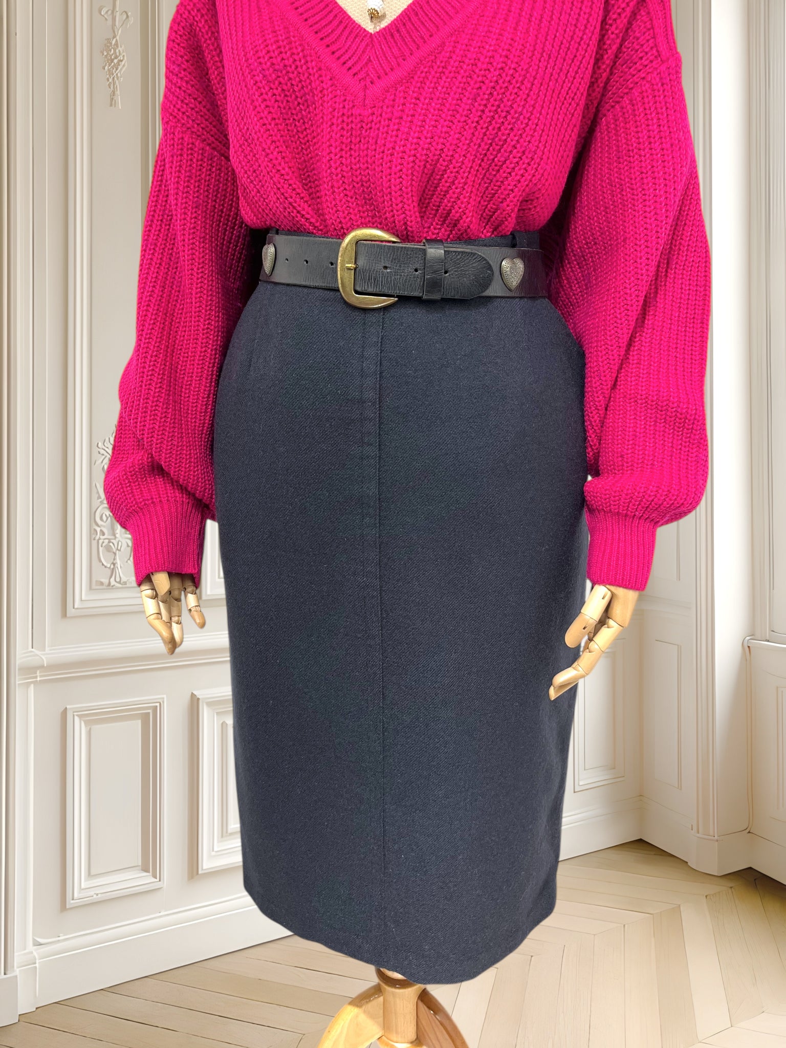 Fusta este căptușită și are buzunare laterale