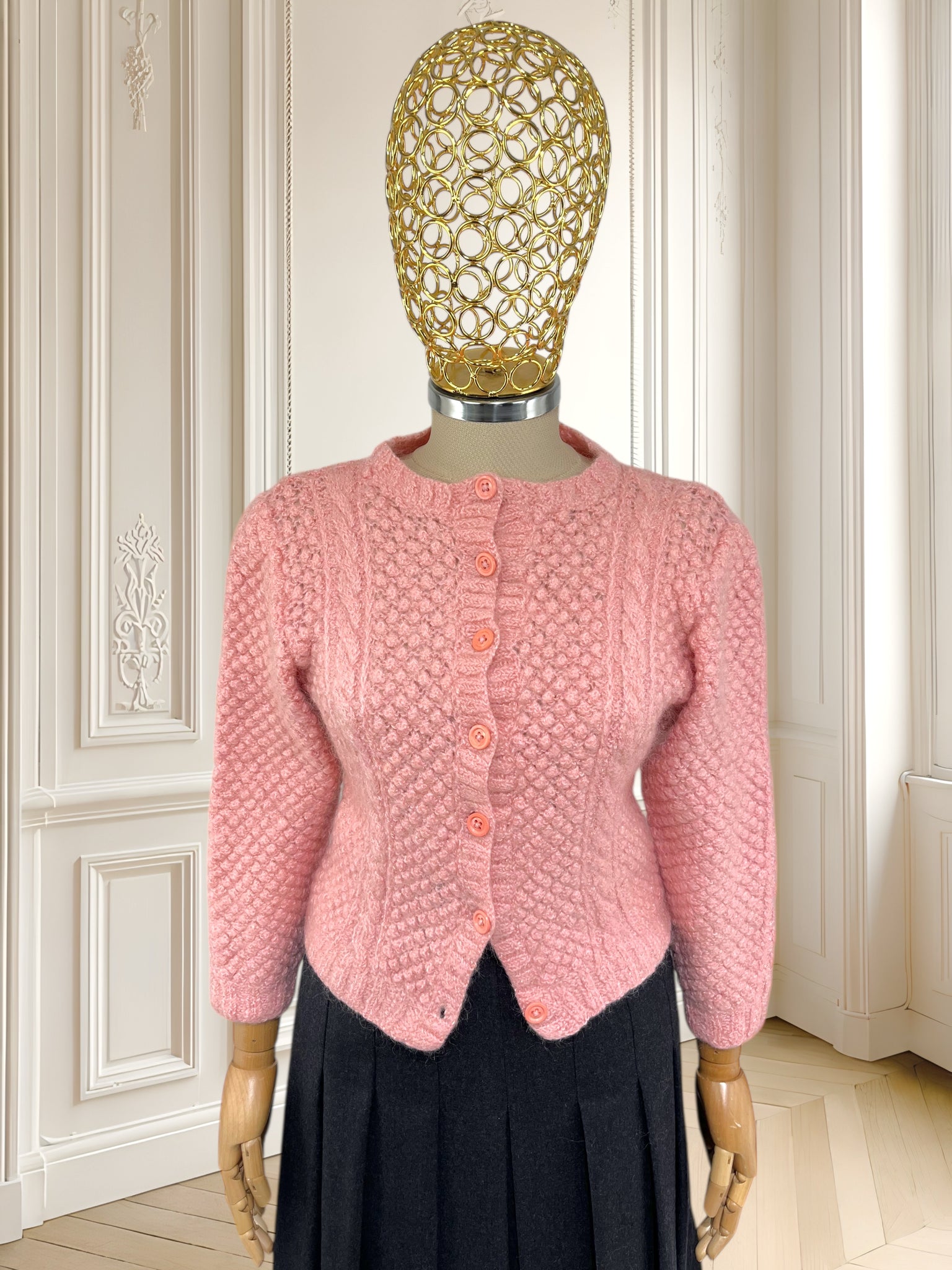 Cardigan lucrat manual din lână mărimea S